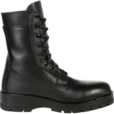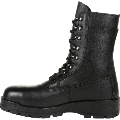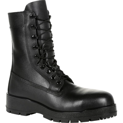 This U.S. Navy-inspired entry level hot weather black steel toe Military boot for women is a great Berry Compliant option for warm arid environments. With features like a cushion shock absorbing midsole, a padded collar, waterproof liner and a Vibram® Sierra rubber outsole, this 9-inch leather boot is a great combination of comfort and rugged toughness. Add to this standard speed lace eyelets and NATO hooks and you have the high-performance ASTM compliant boot you need at a great value.
