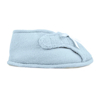 Get cozy with Softones by MUK LUKS Women’s Micro Chenille Adjustable Bootie. With its adjustable velcro closure and cushioned foam insole, these classic slippers will make you want to lounge all day long. Machine wash cold, lay flat to dry. Imported.- 100% Polyester Upper- 100% Polyester Lining- 100% Polyester Insole- 100% TPR Sole- Foam Insole- US Women’s Sizes S (5-6), M (7-8), L (11-12)