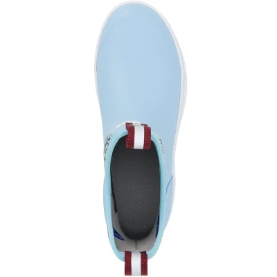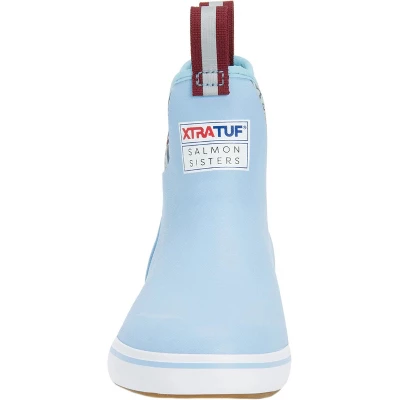 The Salmon Sisters Ankle Deck Boot collection by XTRATUF is crafted for the outdoors. Designed by Alaskans, the Salmon Sisters features fun prints and colors. This women’s pull-on boot, in blue, shares the slip-resisting Chevron outsole and XPRESSCOOL liner found on the XTRATUF Legacy boot collection. Reaching 6 inches in height, this plain toe outdoor deck boot, with a mermaid print on side gore is constructed with hand-layered rubber, which is not classified as a commercial grade rubber, but is waterproof and delivers on slip-on-and-go styling. The XTRATUF ankle deck boot is a comfortable option to wear on the boat or out and about. Pick up your pair today.